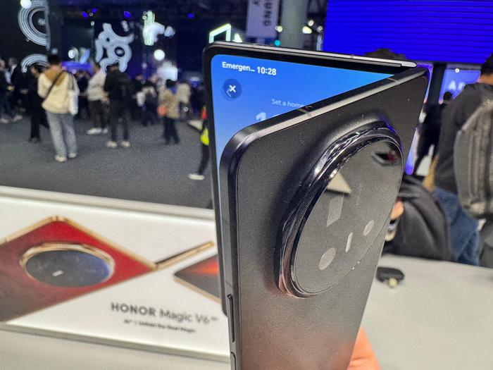 Još jedan uređaj koji je predstavljen, već je uveliko najavljivan – HONOR Magic V6. U pitanju je najtanji i istovremeno najizdržljiviji sklopivi telefon na svetu. Uprkos debljini od samo 8.75 mm u sklopljenom stanju, ovaj telefon donosi bateriju od 6660 mAh, napravljenu na bazi silikonskog ugljenika. U pitanju je najtanja baterija na ovom principu, sa većim sadržajem silikona, koja donosi veću gustinu skladištenja energije. Zbog svega toga, to je danas baterija sa najvećim kapacitetom među preklopnim telefonima. Magic V6 pokreće trenutno najbrži čipset (Snapdragon 8 Elite Gen 5), a poseduje spoljni ekran dijagonale 6.52“ i preklopni ekran dijagonale 7.95“, oba u AMOLED izdanju. Spoljni ekran ima osvetljenje o čak 6000 nita, dok unutrašnji ekran takođe briljira, sa 5000 nita. Telefon je opremljen i sa vrhunskim sistemom kamera. Glavna kamera ima rezoluciju od 50 MP, dok periskopska telefoto kamera donosi rezoluciju od 64 MP. Pored njih, na raspolaganju su 20 MP selfi kamere, na spoljnom i unutrašnjem ekranu.