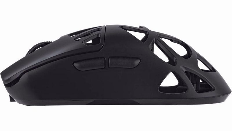 Već na prvi pogled je jasno da je CarbonX drugačiji od ostalih miševa ovog proizvođača. Sa karbon-kompozitnim kućištem koje je dodatno olakšano perforiranim otvorima (ima ih ukupno 15), dobili smo miša čija težina iznosi samo 50 grama. Otvori su napravljeni tako da se ne žrtvuje čvrstina kućišta, a tome definitivno pomaže i materijal od koga je napravljen. Simetričnog je oblika, tako da može da se koristi i u levoj i u desnoj ruci. Ipak, u slučaju gejminga, predviđen je za dešnjake, pošto se na levoj bočnoj ivici nalaze dodatni, programabilni tasteri, predviđeni za kontrolu palcem.