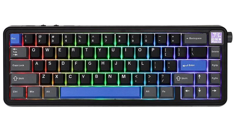 Kućište tastature je visokoprofilno i napravljeno je od kvalitetne plastike. Na zadnjoj strani nalaze se „nogice“ koje mogu da promene nagib tastature i to u dva koraka. Tastatura je kompaktna i ima 65% veličine u odnosu na standardne tastature. U gornjem desnom uglu postavljen je mali TFT ekran koji nudi prikaz osnovnih informacija, kao što su stanje napunjenosti baterije, da li je aktivan Win ili Mac mod, datum i vreme i tip konekcije. Ako vam ove informacije nisu važne, postoji mogućnost da se na ovaj ekran pošalju i neke druge informacije (neka slika na primer). Sa desne bočne strane, odmah ispod displeja, postavljen je točkić koji služi za regulisanje jačine zvuka. Naravno, ne smemo da zaboravimo ni podesivo RGB osvetljenje, koje nudi dvadesetak različitih modova rada.