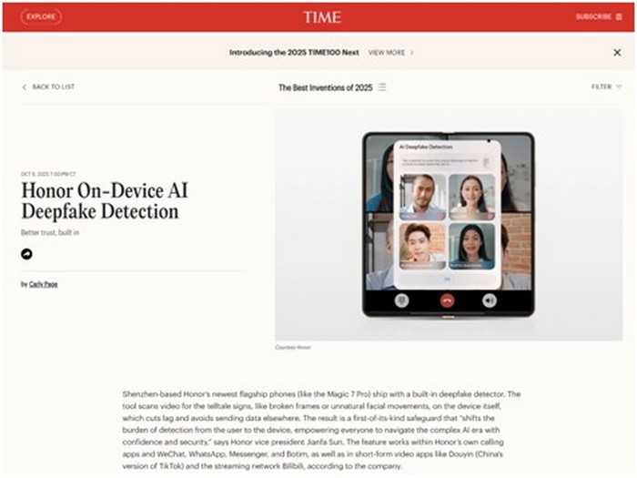 HONOR je obezbedio dve poželjne pozicije na listi TIME Best Inventions 2025, što predstavlja snažan dokaz dugogodišnje posvećenosti brenda inovacijama i istraživanju i razvoju. Takođe, jedini je brend koji je osvojio više nagrada za inovacije u pametnim telefonima, čime učvršćuje svoju poziciju globalnog lidera u tehnologiji.