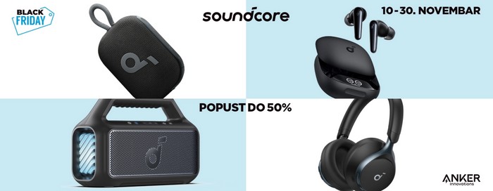 Od 10. novembra do 30. novembra, najbolje soundcore bežične slušalice i zvučnici dostupni su uz ekskluzivne popuste do 50% na sajtu Ankersrbija.rs, kao i u Anker prodavnici u TC Galerija.