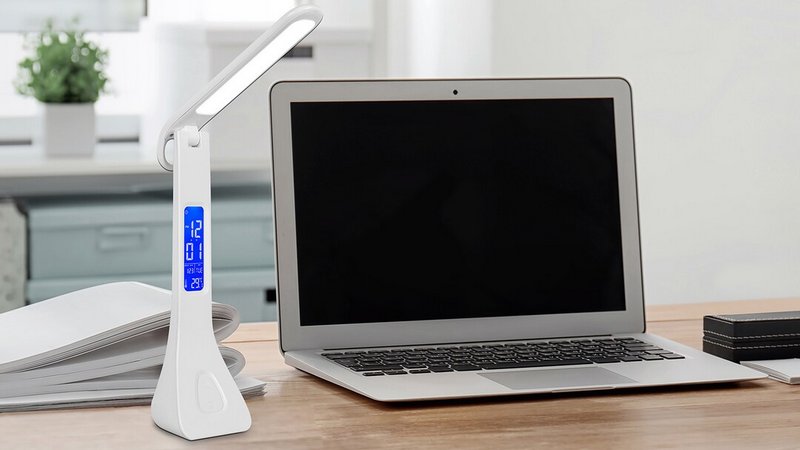 Dodatna funkcionalnost je što lampa ima ugrađen LCD ekran na stalku. Na displeju se prikazuju vreme, kalendar i temperatura u prostoriji, a postoji i mogućnost definisanja alarma. Napajanje se ostvaruje putem USB-C konekcije, a u paketu se dobija odgovarajući kabl i ispravljač. Naravno, napajanje je moguće i preko bilo kog drugog izvora na koji može da se prikači kabl (računar, drugi ispravljač, powerbank…).