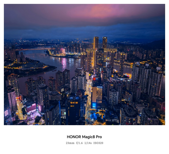 Kasnije, izlazak prelazi na viši nivo – na krovni bar ili vidikovac iznad grada – a HONOR Magic8 Pro ponovo pokazuje da je više od kamere na telefonu. Uz Ultra Night Telephoto objektiv, mogu se jasno uhvatiti i najsitniji detalji: siluetu na horizontu ili svetlost u daljini. AI sistem za noćno snimanje neprekidno prilagođava kadar, osvetljava i stabilizuje sliku, hvatajući suptilne tonove na nebu i u gradu, bez gubljenja nijansi.